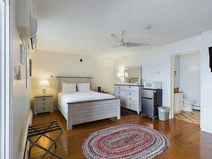 Room One is on the second floor with a queen bed and twin pullout sofa. It features a balcony overlooking Weldon’s Way. Not located on The 1661 Resort Property. No WIFI Access and No Front Desk. Check In/Out & Keys at The 1661 Inn. Beach towels, store luggage and discounted champagne breakfast buffet available.