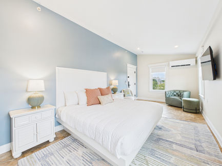 Spacious third floor king bedroom with island views. Open layout features king sized bed and sitting area. The stylish bathroom has custom tiled shower and designer finishes. Note this third floor Suite is accessible via stairs only, there is no elevator.
